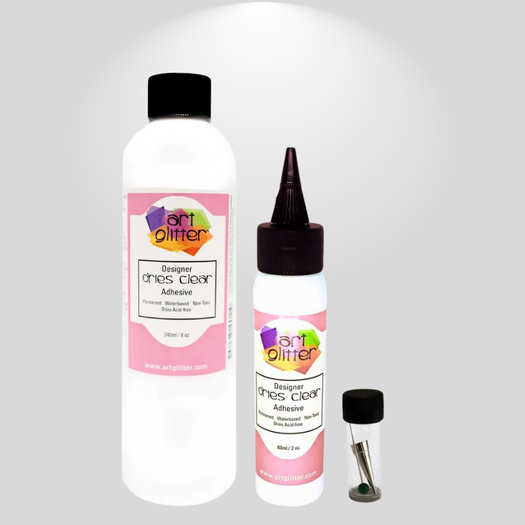 Art Institute Glitter Designer Dries Clear Adhesive Clear Glue Kit Bundle-3 Items 8oz,2oz and Metal Tip, Multicolored